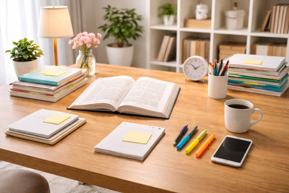 学習環境は継続に大きく影響します。机に向かったときにすぐ勉強を始められる状態であれば、心理的な負担は小さくなります。教材がすぐ手に取れる場所に置かれている、必要な文房具がそろっている、余計な物が机の上に少ないといった環境は、勉強のハードルを下げる要素になります。